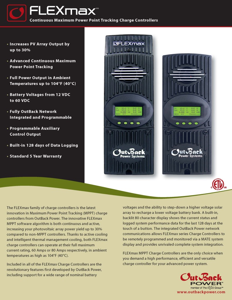 2. Outback Flexmax MPPT Controller (www.outbackpower.com)